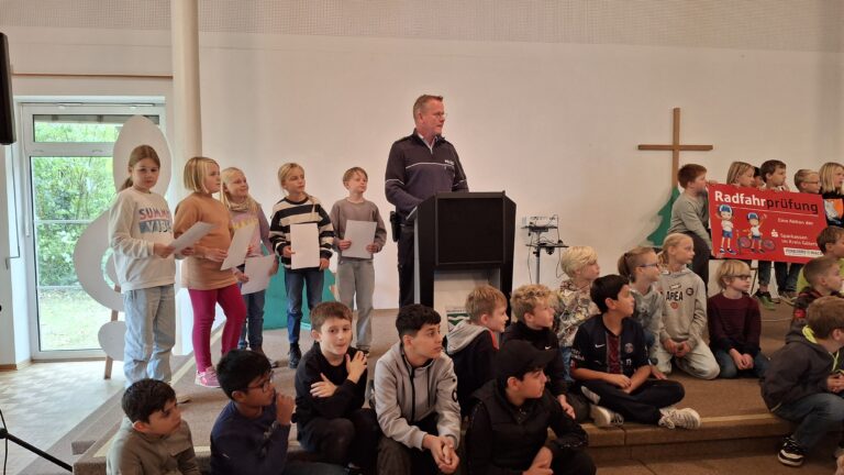 Das Thema Verkehrssicherheit prägte die ersten Schulwochen des neuen Schuljahres… Für unsere Viertklässler stand im September die Radfahrausbildung samt Prüfung an. Alle teilnehmenden Kinder meisterten souverän die Strecke durchs Dorf und erhielten nach bestandener theoretischer und praktischer Prüfung ihren Fahrradpass. Einige Schülerinnen und Schüler erhielten sogar eine Urkunde für eine fehlerfreie Prüfung.