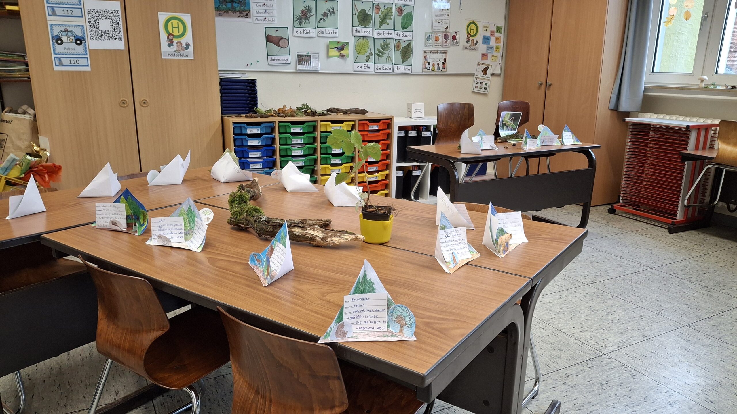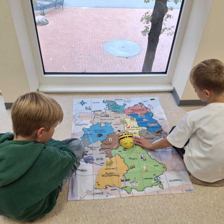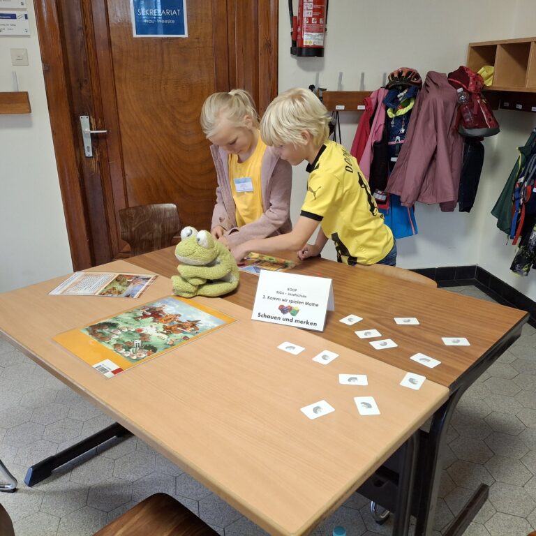Mit Musik und Theater begann unser diesjähriger Tag der offenen Tür. Viele Familien fanden sich bereits um 15 Uhr zur offiziellen Begrüßung unter Mitwirkung des Schulchores und der Theater AG in der Aula der Josefschule ein. Anschließend öffneten die Lehrkräfte, die durch Schülerinnen und Schüler ihrer eigenen Klasse unterstützt wurden, und das OGS-Personal ihre Räume. Die engagierten Schulguides aus den 4. Klassen führten die Gäste durch die Schule. In den Klassenräumen gab es viel zu schauen und zu erproben: Die Kinder lernten die BeeBots (programmierbare Bienen) kennen, erfuhren etwas zum Sachunterrichtsthema „Wald“, konnten Zahlen und Buchstaben haptisch „begreifen“, nutzen das iPad spielerisch, entdeckten und spielten Musikinstrumente und verbrachten Zeit mit kreativen Angeboten. Auch Materialien zur Förderung der Sprache oder Feinmotorik wurden gezeigt und konnten getestet werden. Auf dem Schulhof wartete noch eine sportliche Herausforderung auf die kleinen Gäste… Im Roller-Parcours konnten sie ihre motorische Geschicklichkeit beweisen. Unsere Schulsozialarbeiterin stand für eine erste Kontaktaufnahme bereit. Auch einige Eltern aus der Schulpflegschaft und dem Förderverein gestalteten den Nachmittag mit. Josefschul-Shirts wurden verkauft und mit frisch gebackenen Waffeln lockten sie Groß und Klein an und sorgten für eine einladende Atmosphäre.